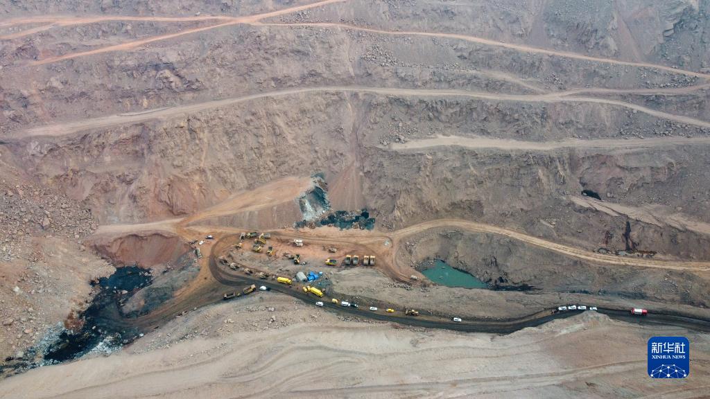 2月23日,救援車(chē)輛在內蒙古自治區阿拉善盟阿拉善左旗新井煤業(yè)有限公司露天煤礦坍塌事故現場(chǎng)作業(yè)(無(wú)人機照片)。