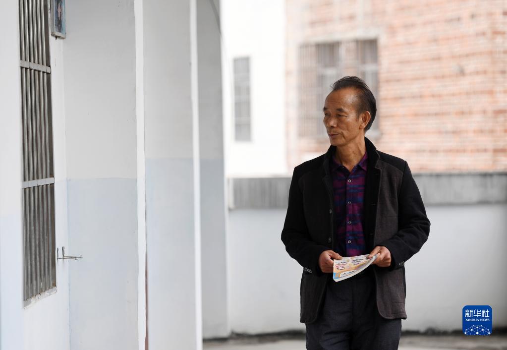 在廣西賓陽(yáng)縣王靈鎮中心學(xué)校七新教學(xué)點(diǎn),王英紅老師下課后走在教室外(2月22日攝)。