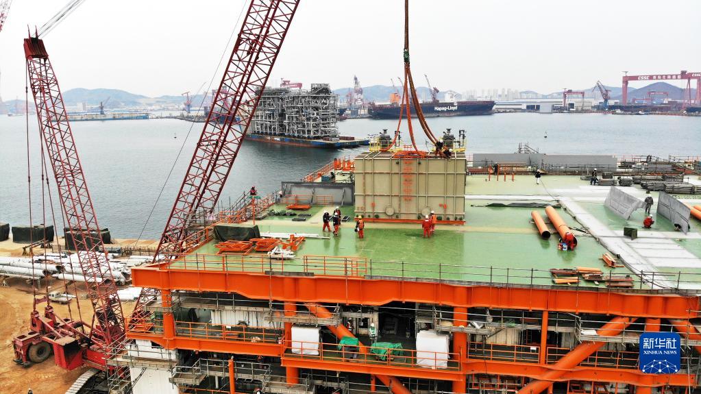 新華全媒+丨渤海灣千億方大氣田最大組塊青島封頂