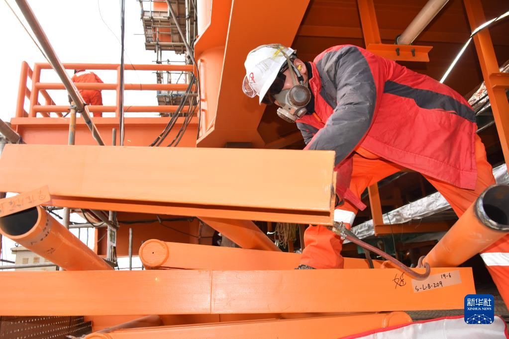 2月22日,工人在渤中19-6凝析氣田一期CEPA(中心處理平臺)組塊建造現場(chǎng)進(jìn)行施工作業(yè)。