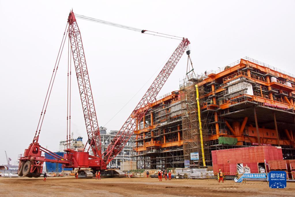 2月22日,渤中19-6凝析氣田一期CEPA(中心處理平臺)組塊建造現場(chǎng)正在進(jìn)行吊裝作業(yè)。
