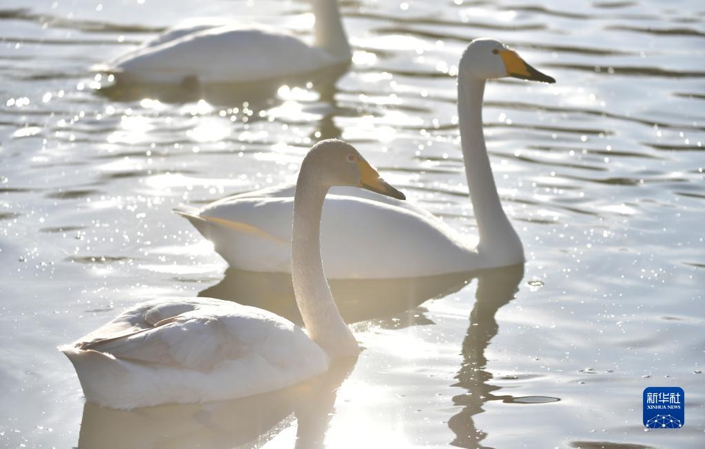 入冬以來(lái),遼寧省北票市八家子鄉紅村大凌河畔的400多只白天鵝在河水淺灘處嬉戲覓食,吸引人們前來(lái)觀(guān)賞和拍照。