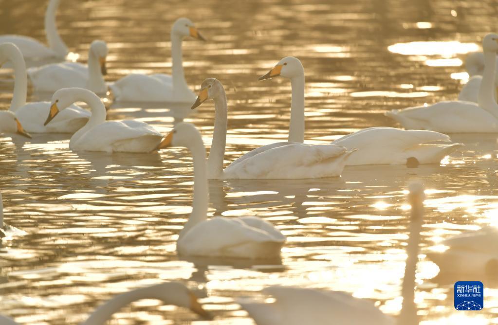 入冬以來(lái),遼寧省北票市八家子鄉紅村大凌河畔的400多只白天鵝在河水淺灘處嬉戲覓食,吸引人們前來(lái)觀(guān)賞和拍照。