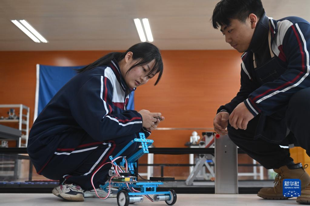 2月23日,西寧果洛中學(xué)學(xué)生在機器人教室內操作自己組裝的機器人。