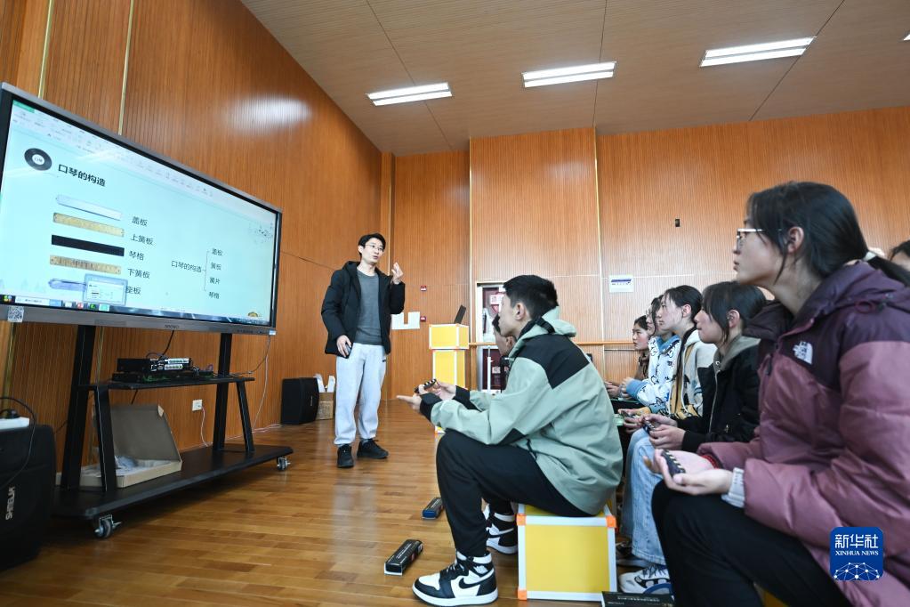 2月23日,上海援青教師闞延俊在給學(xué)生上音樂(lè )課。