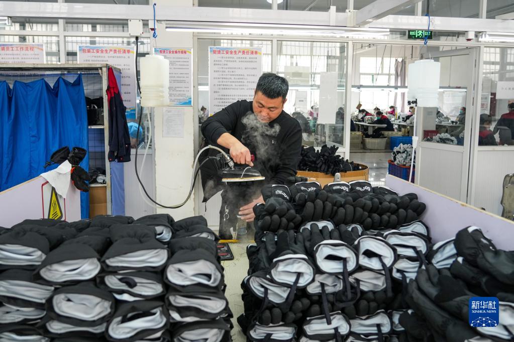 2月23日,在嘉祥縣的一家手套生產(chǎn)企業(yè),員工在車(chē)間內加工生產(chǎn)手套。