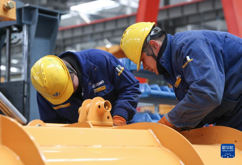 2月22日,工人在位于阜新市的徐工(遼寧)機械有限公司生產(chǎn)車(chē)間內工作。