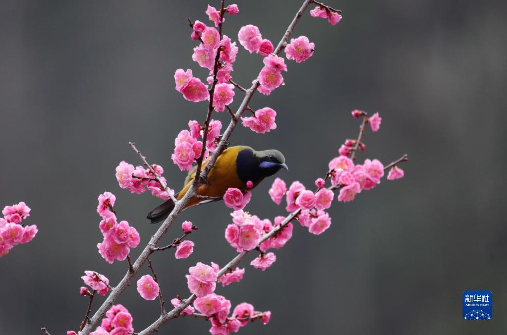 春回大地,在湖南省張家界市武陵源區黃龍洞景區,梅花爭艷綻放,春意盎然,吸引人們來(lái)到戶(hù)外踏春賞花,樂(lè )享春光。