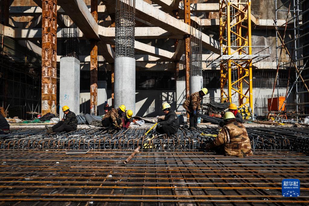 工人在長(cháng)春市城市軌道交通6號線(xiàn)03標段三工區華慶路站施工現場(chǎng)作業(yè)(2月23日攝)。