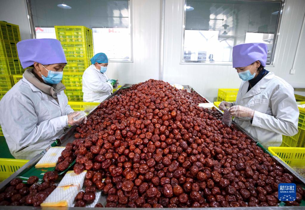 寧夏同心縣一家圓棗深加工企業(yè)內,工人對烘干后的圓棗進(jìn)行分揀包裝(2月23日攝)。