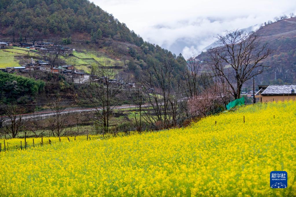 在怒江傈僳族自治州貢山獨龍族怒族自治縣丙中洛鎮茶臘村拍攝的油菜花(2月23日攝)。