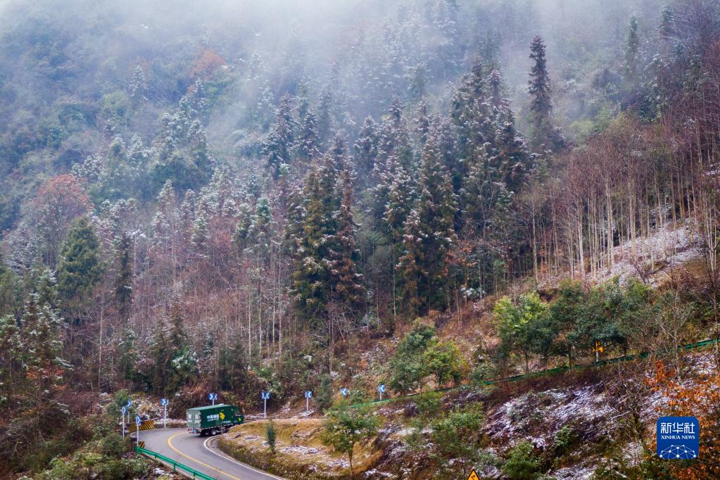 2月22日,一輛郵車(chē)在送郵件的途中(無(wú)人機照片)。