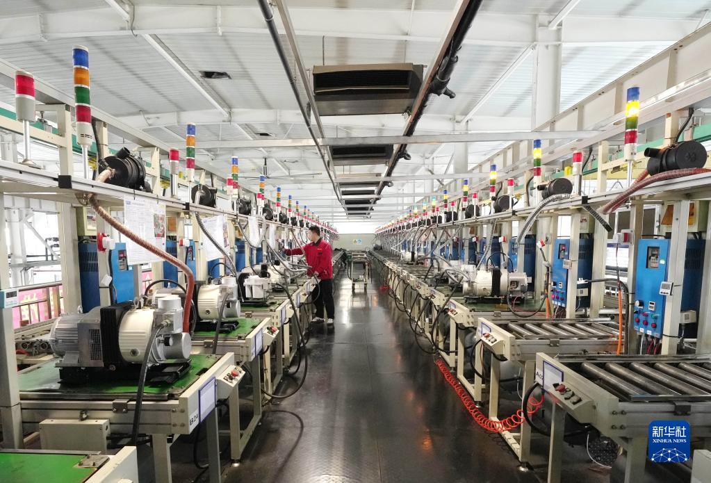 2月24日,工人在河北省元氏縣一家機電設備企業(yè)的生產(chǎn)車(chē)間工作。