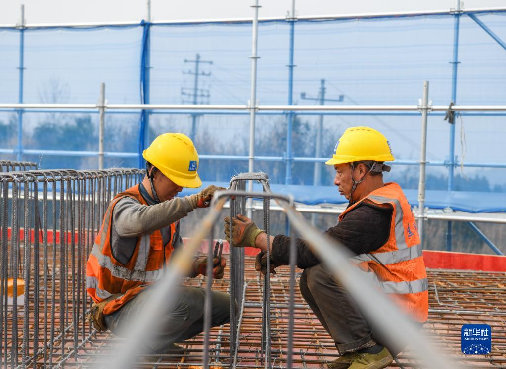 2月24日,在位于成都東部新區的四川大學(xué)華西東部醫院項目建設現場(chǎng),工人在進(jìn)行封頂施工作業(yè)。