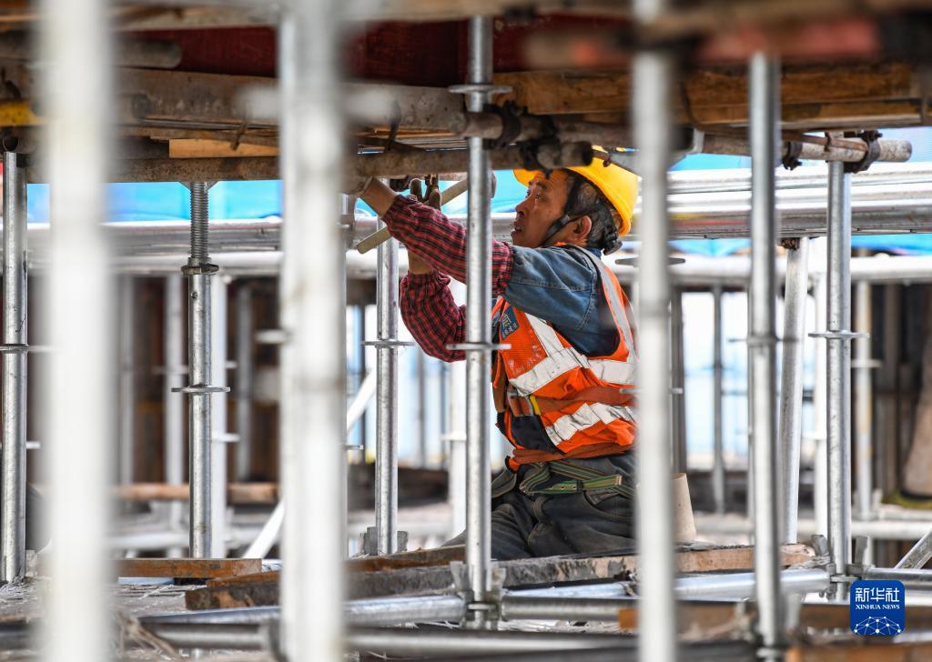 2月24日,在位于成都東部新區的四川大學(xué)華西東部醫院項目建設現場(chǎng),工人在進(jìn)行封頂施工作業(yè)。