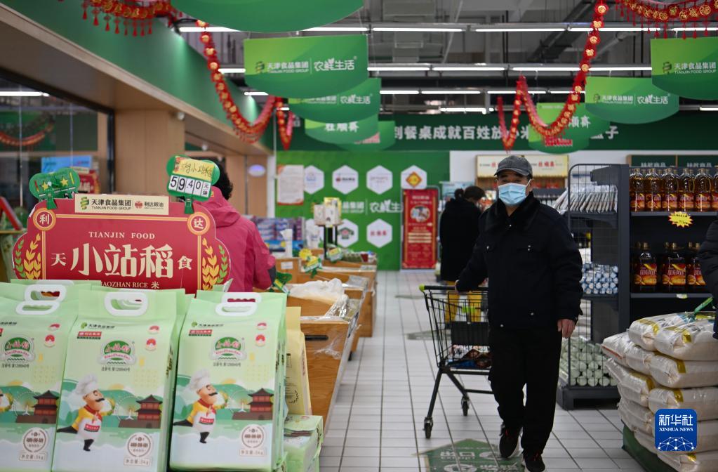顧客在天津食品集團津農精品體驗店選購產(chǎn)品(2月23日攝)。