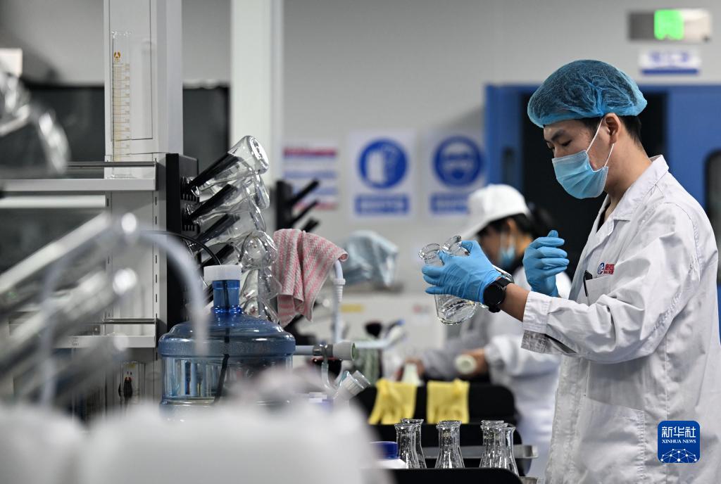 在天津海河乳品有限公司創(chuàng )新研發(fā)中心,工作人員在對產(chǎn)品進(jìn)行檢測(2月20日攝)。