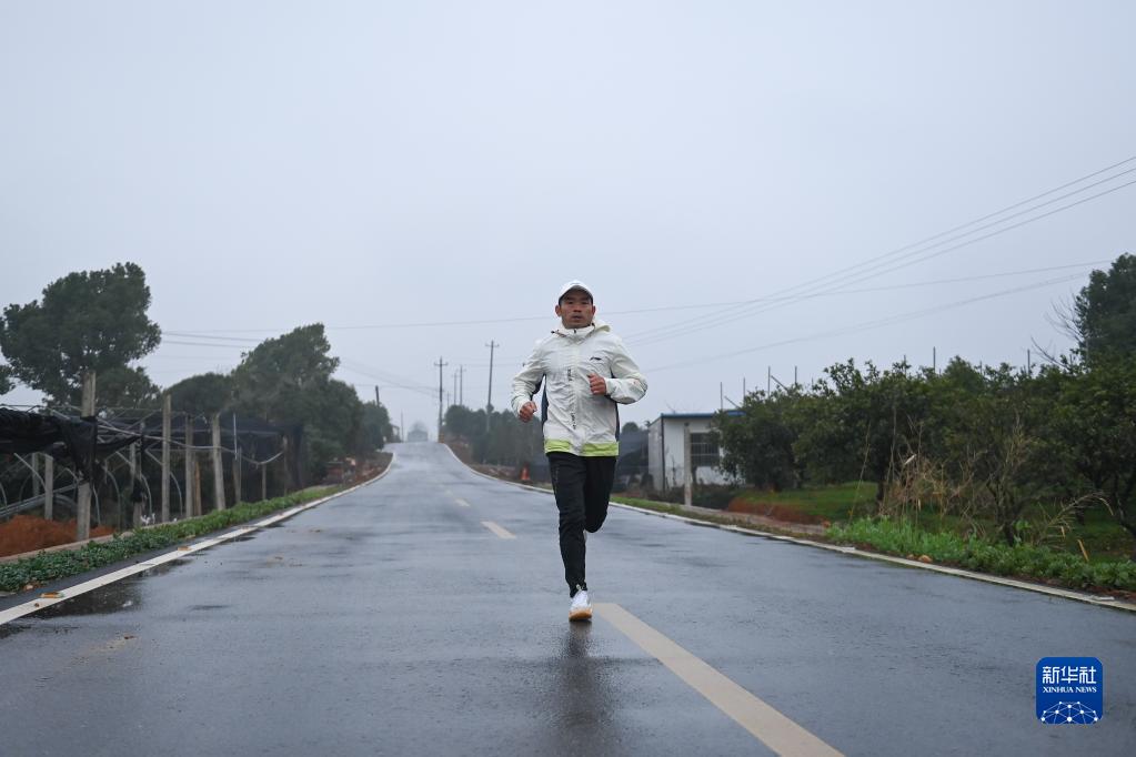 2月24日,羅書(shū)堅在浙江省金華市婺城區羅店鎮三甲山村跑步訓練。