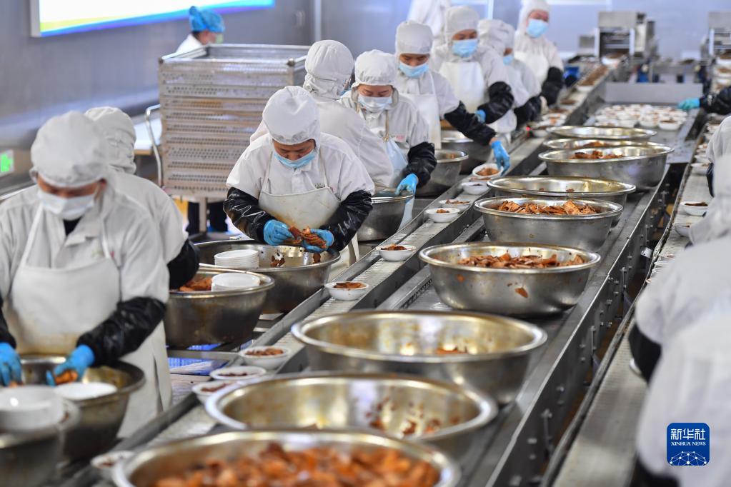 2月24日,瀏陽(yáng)市省級農業(yè)科技園區一家預制菜企業(yè)工作人員在預制菜生產(chǎn)流水線(xiàn)上作業(yè)。