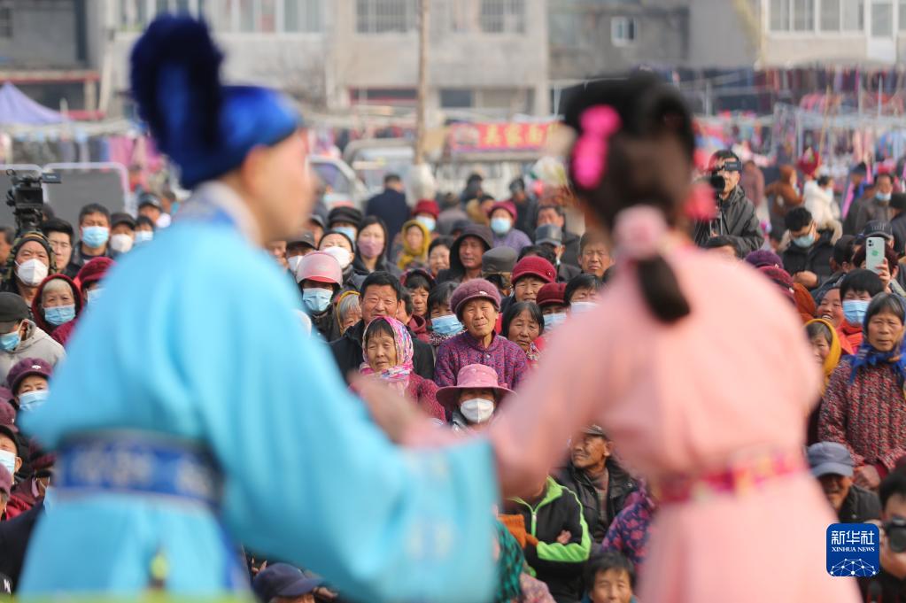 2月24日,在臨沂市沂南縣依汶鎮東依汶村,村民在觀(guān)看戲曲表演。