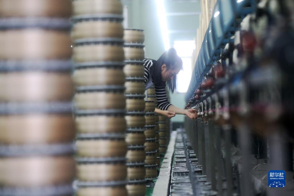 2月23日,工人在重慶市黔江區海通絲綢公司生產(chǎn)車(chē)間忙碌。