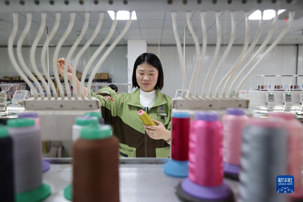 2月25日,工人在浙江省湖州市德清縣新安鎮一家紡織企業(yè)生產(chǎn)車(chē)間內忙碌。
