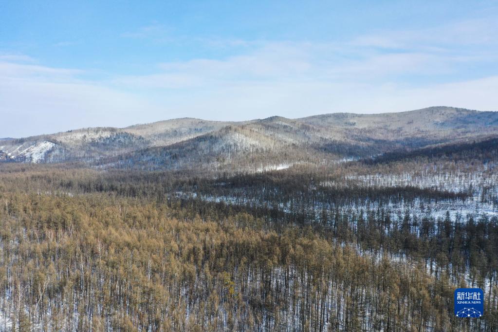 2月22日拍攝的內蒙古森工集團滿(mǎn)歸森工公司烏龍岱林場(chǎng)景色(無(wú)人機照片)。
