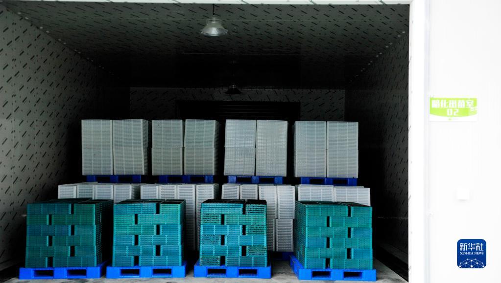 2月24日,在涇口鄉工廠(chǎng)化智能育秧中心,大批育秧秧盤(pán)已轉運至出苗室內進(jìn)行育秧。