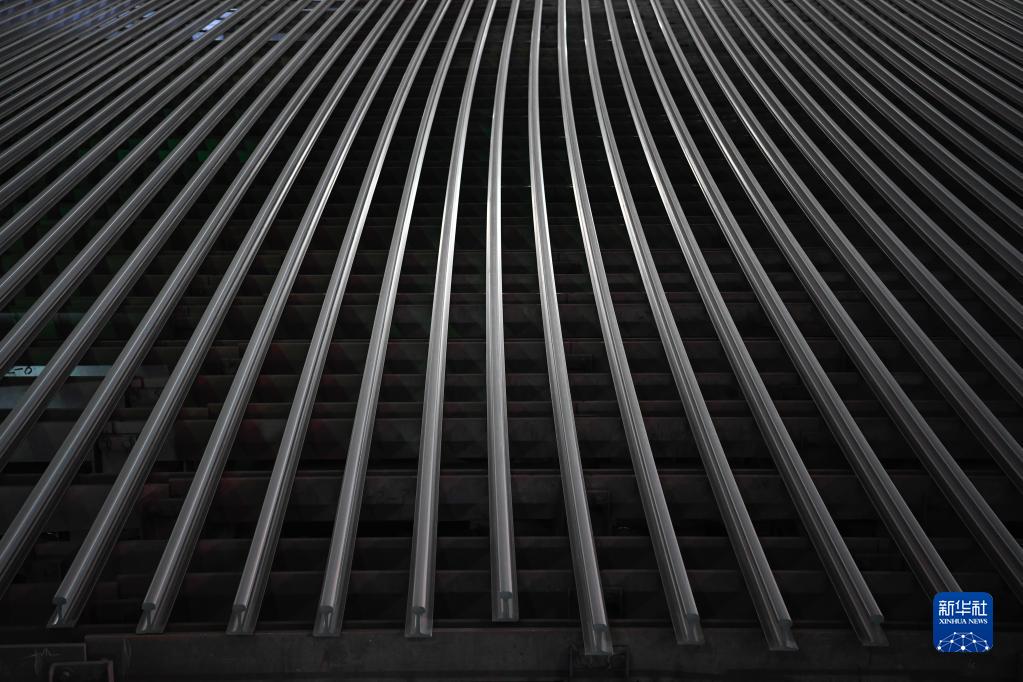 攀鋼釩軌梁廠(chǎng)內剛剛軋制成型的百米鋼軌在進(jìn)行預彎冷卻(2月24日攝)。