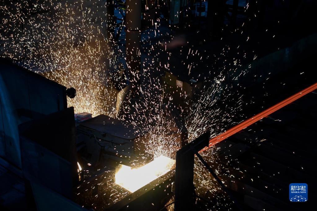 在攀鋼釩軌梁廠(chǎng)鋼軌生產(chǎn)線(xiàn)上,軋制后的鋼軌經(jīng)冷床熱鋸鋸切(2月24日攝)。