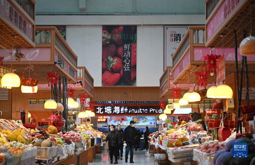 居民在中新天津生態(tài)城第三社區中心菜市場(chǎng)內選購食材(2月24日攝)。