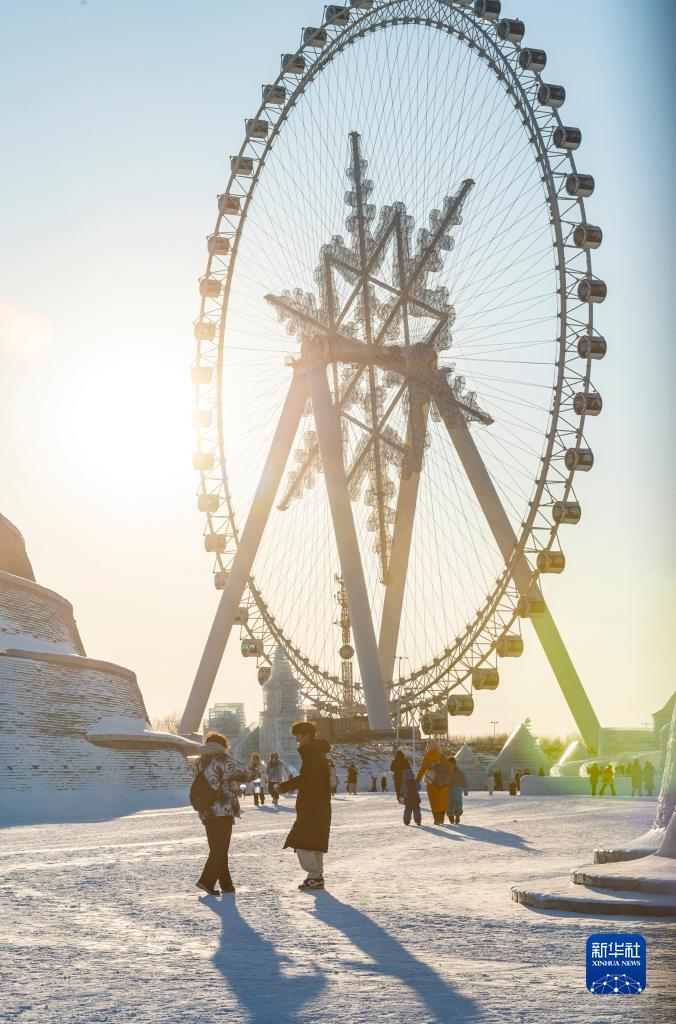 2月25日,游客在哈爾濱冰雪大世界園區游玩。