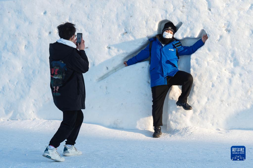 2月25日,游客在哈爾濱冰雪大世界園區游玩。
