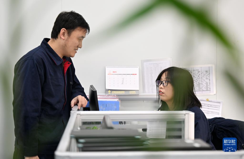 在博宇(天津)半導體材料有限公司,張建輝(左)和李麗花交流工作(2月23日攝)?!?5后”夫妻張建輝和李麗花曾在北京打拼多年,二人目前同在博宇(天津)半導體材料有限公司從事生產(chǎn)工作。2020年,他們落戶(hù)天津寶坻京津中關(guān)村科技城,并在配套的中關(guān)村創(chuàng )新人才社區居住,孩子也從山東老家接來(lái)身邊上學(xué),一家三口實(shí)現了同城生活。張建輝希望孩子學(xué)業(yè)有成、身體健康,李麗花希望一家人在一起的時(shí)間更多、越來(lái)越幸福。