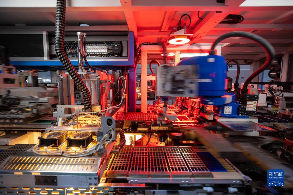 在位于寧夏同心工業(yè)園區清潔能源產(chǎn)業(yè)園的英利新能源(寧夏)有限公司智能制造車(chē)間內,自動(dòng)化設備在加工光伏組件(2月23日攝)。