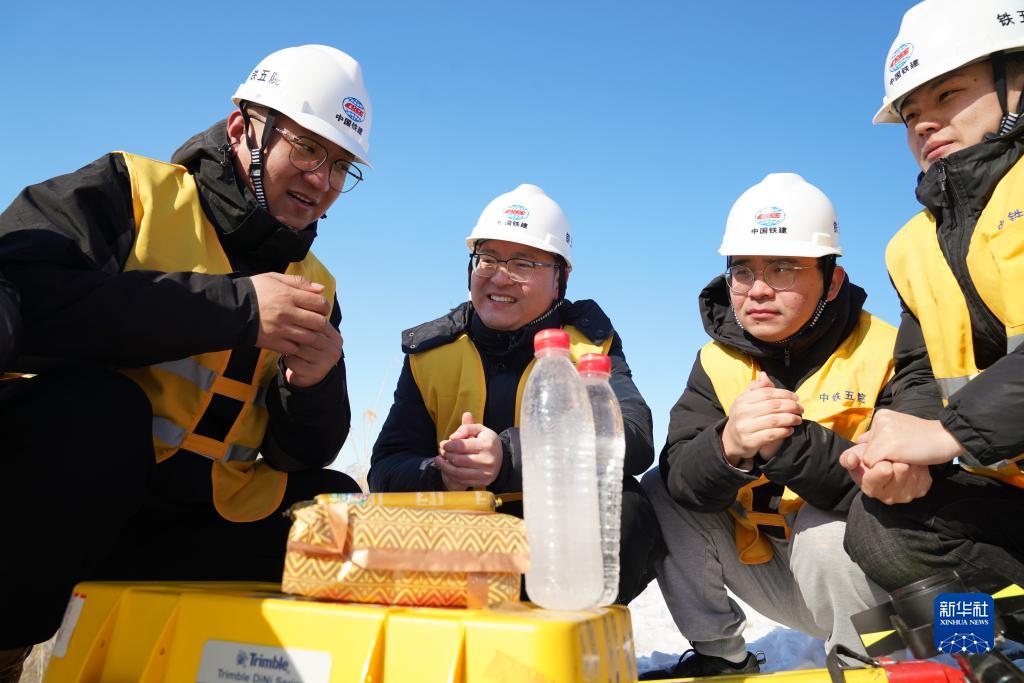 2月25日,黃騰(左二)與同事在佳撫鐵路佳富段鐵路旁休整。