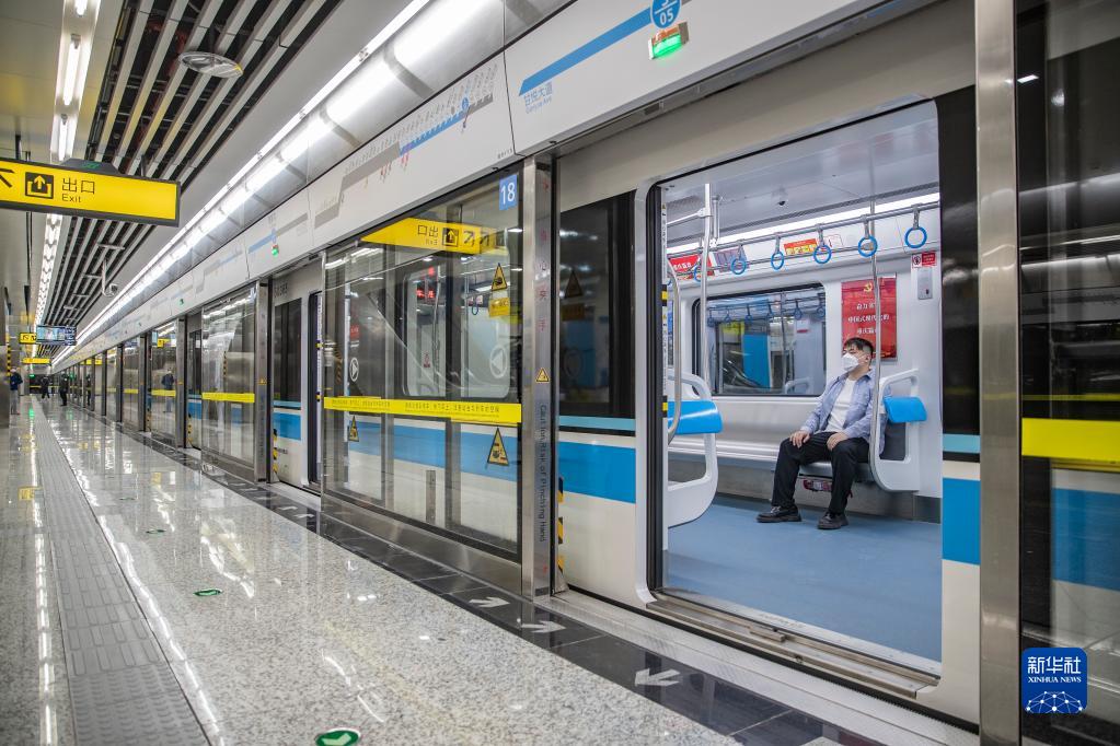 2月27日,在重慶軌道交通5號線(xiàn)北延伸段魯家溝站,乘客在列車(chē)內等候發(fā)車(chē)。