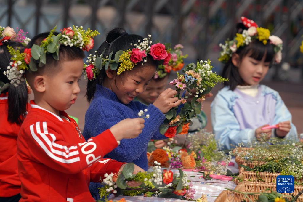 當日,重慶市北碚區縉云幼兒園開(kāi)展“編花環(huán) 迎春天”手工制作活動(dòng),孩子們在老師的指導下,用枝條和鮮花編制成一頂頂多彩花環(huán),感受春天的氣息,喜迎春天的到來(lái)。