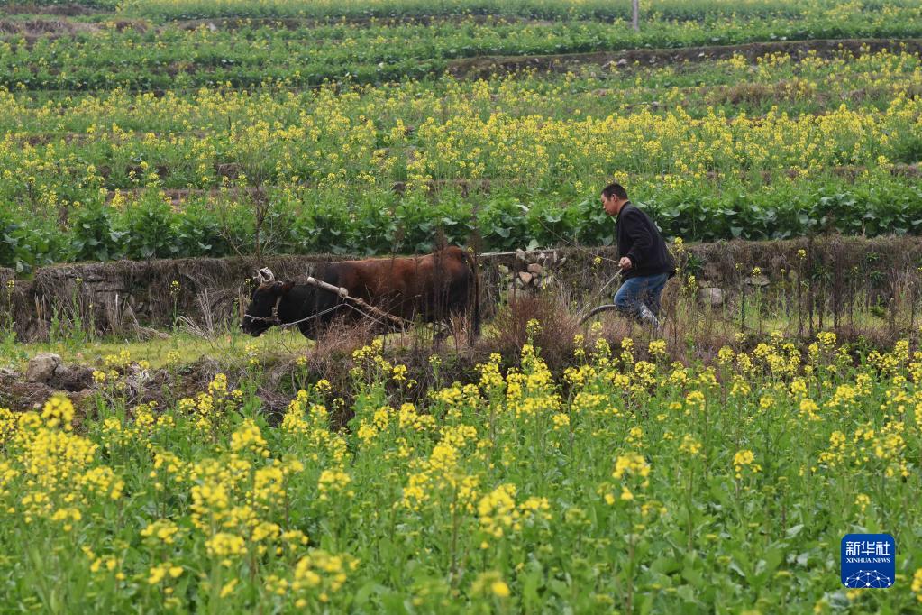 2月28日,村民在貴州省銅仁市江口縣壩盤(pán)鎮高墻村田間犁田。