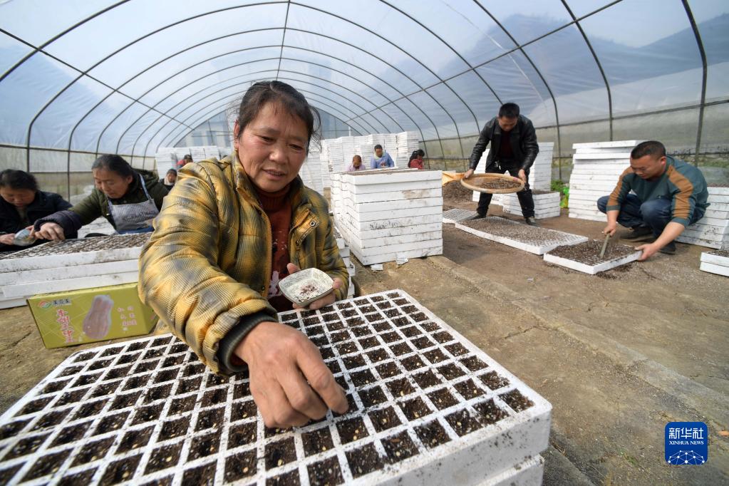2月28日,村民在貴州省綏陽(yáng)縣蒲場(chǎng)鎮儒溪村進(jìn)行育苗工作。