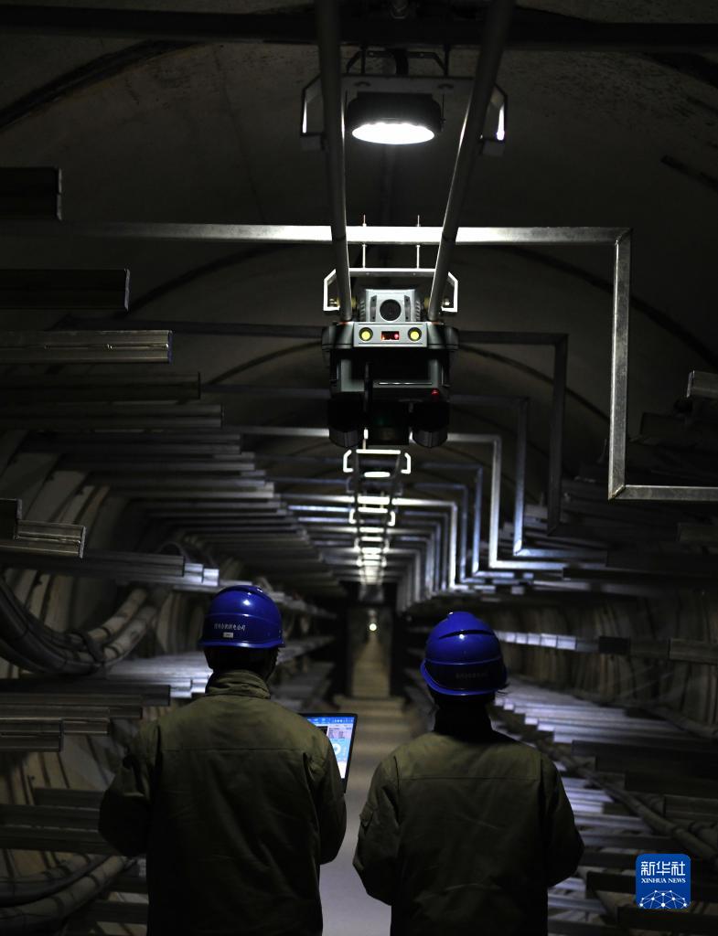2月27日,國網(wǎng)合肥供電公司電纜運檢中心工作人員在巢湖湖底電纜隧道內調試“機器人巡檢員”。