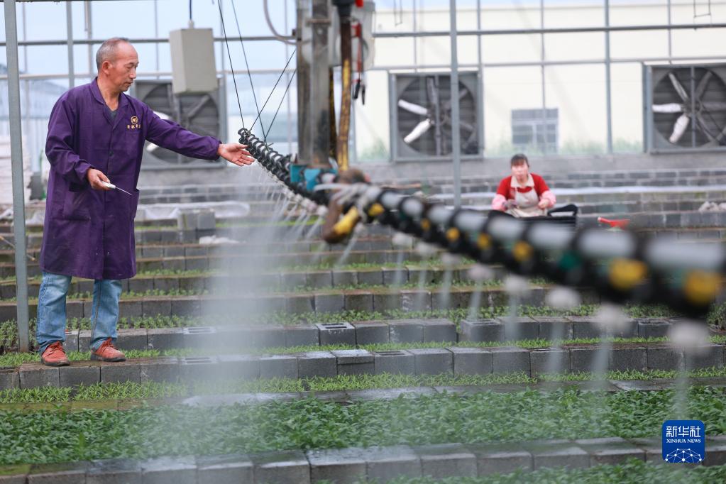 在貴州省榕江縣車(chē)江壩區智慧育苗中心內,當地農民運用水稻缽體育秧機、水肥一體自動(dòng)噴淋機、多功能育苗大棚等機械化、智能化設備進(jìn)行育秧育苗生產(chǎn),有效提高了勞動(dòng)效率和種苗質(zhì)量,助力春耕生產(chǎn)。