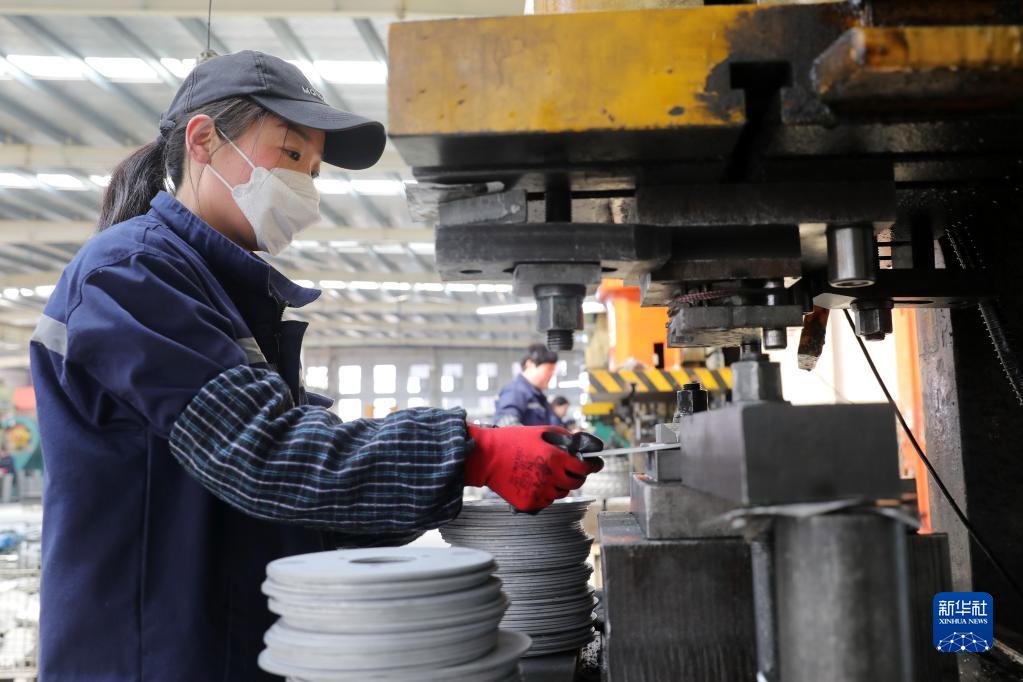 2月28日,在淮北市濉溪經(jīng)濟開(kāi)發(fā)區一家制動(dòng)部件生產(chǎn)企業(yè),工人在車(chē)間生產(chǎn)剎車(chē)盤(pán)。