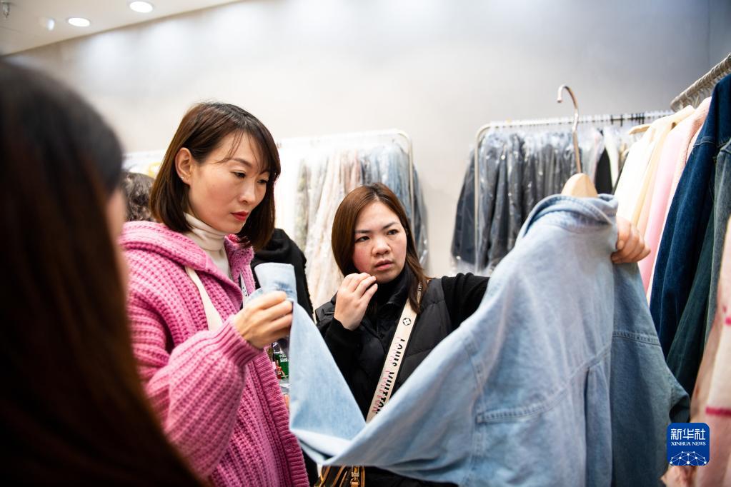 2月28日,批發(fā)商在湖南省株洲市蘆淞區華麗服裝批發(fā)大市場(chǎng)選購服飾。
