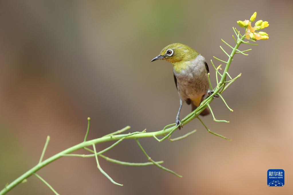 在湖南省衡陽(yáng)市雁峰區岳屏鎮油菜花海里拍攝的小鳥(niǎo)(2月28日攝)。