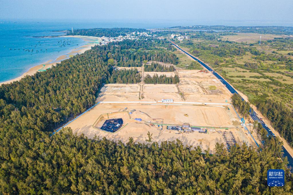 2月27日在海南省儋州市拍攝的建設中的“夕照儋耳”驛站和環(huán)島旅游公路(無(wú)人機照片)。
