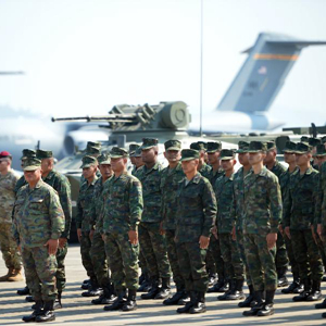 2月28日,多國軍人在泰國羅勇府烏塔堡海軍基地出席開(kāi)幕式。