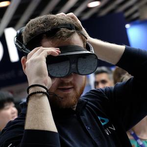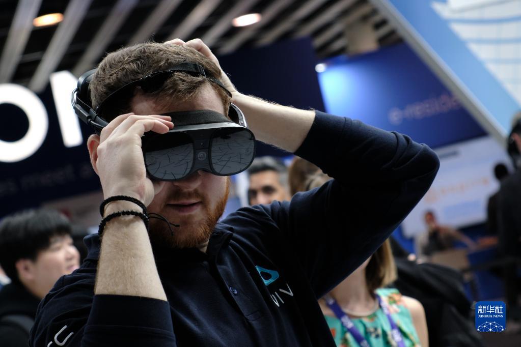 2月28日,一名男子在西班牙巴塞羅那舉行的2023世界移動(dòng)通信大會(huì )上體驗虛擬現實(shí)技術(shù)。