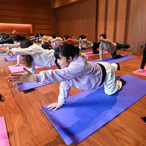 3月1日在婦女節主題活動(dòng)現場(chǎng)拍攝的瑜伽體驗課活動(dòng)。