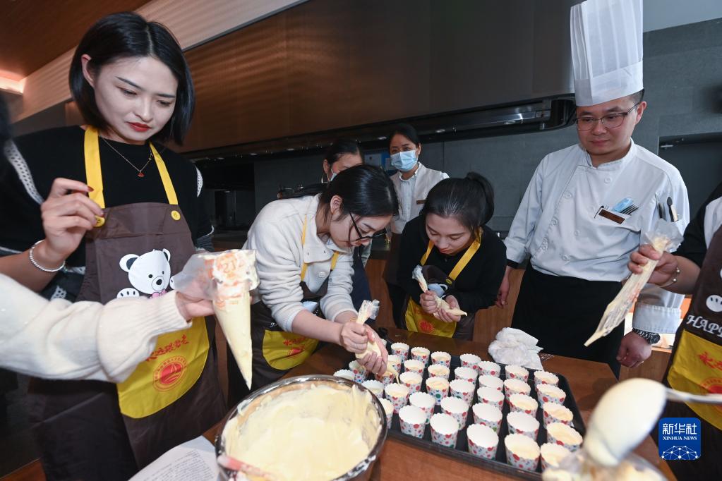 3月1日在婦女節主題活動(dòng)現場(chǎng)拍攝的西點(diǎn)烘焙學(xué)習課程。